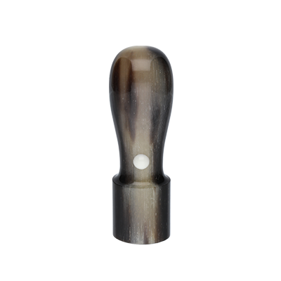 オランダ水牛の特徴 印鑑の世界でオランダ水牛と呼ばれる陸牛のツノです。牛角(うしのつの)とも呼ばれています。 素材の色が淡く、乳白色の部分とやや褐色の「ふ」と呼ばれる部分の濃淡が美しい印鑑材料です。 黒水牛に比べ、稀少性が高く「ふ」の少ない乳白色の材料が高級品とされていますが、濃淡によって現れる模様の味わいが魅力的です。 ナチュラルな風合いと、印鑑に適した硬さ、朱肉のなじみの良さから高級印鑑の材料として人気です。 湿度の変化や紫外線に弱いので、印鑑ケースに入れて保管をしてください。