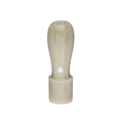 オランダ水牛の特徴 印鑑の世界でオランダ水牛と呼ばれる陸牛のツノです。牛角(うしのつの)とも呼ばれています。 素材の色が淡く、乳白色の部分とやや褐色の「ふ」と呼ばれる部分の濃淡が美しい印鑑材料です。 黒水牛に比べ、稀少性が高く「ふ」の少ない乳白色の材料が高級品とされていますが、濃淡によって現れる模様の味わいが魅力的です。 ナチュラルな風合いと、印鑑に適した硬さ、朱肉のなじみの良さから高級印鑑の材料として人気です。 湿度の変化や紫外線に弱いので、印鑑ケースに入れて保管をしてください。