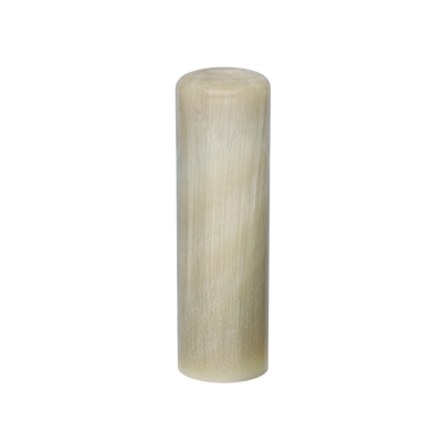 オランダ水牛の特徴 印鑑の世界でオランダ水牛と呼ばれる陸牛のツノです。牛角(うしのつの)とも呼ばれています。 素材の色が淡く、乳白色の部分とやや褐色の「ふ」と呼ばれる部分の濃淡が美しい印鑑材料です。